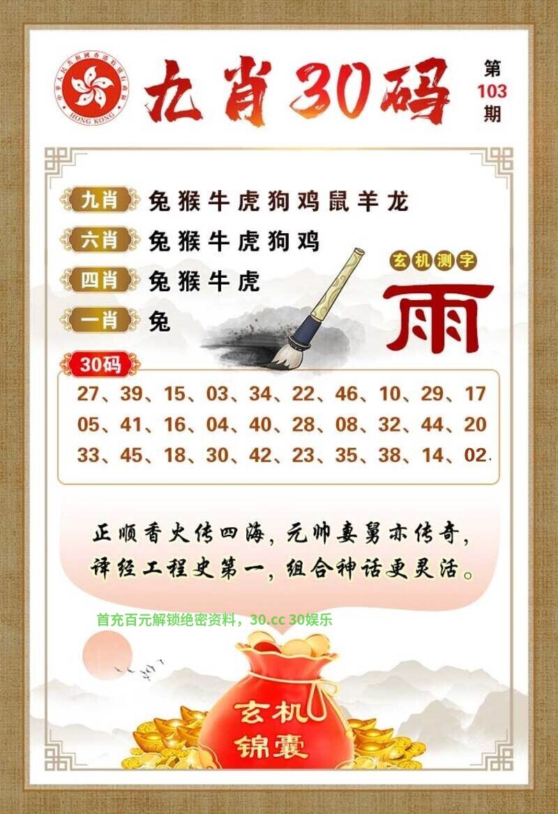 102期:男女两肖『男肖+兔蛇』开鼠30