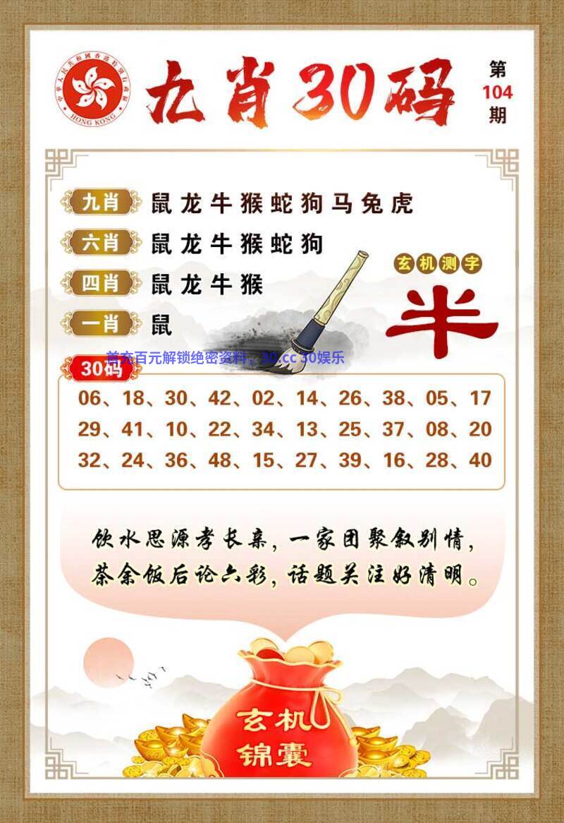 104期⑨肖:虎羊兔猪牛猴蛇鸡:开狗32