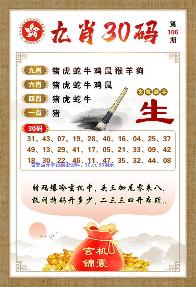 106期⑨肖:牛马猴虎狗羊龙鸡:开猪43